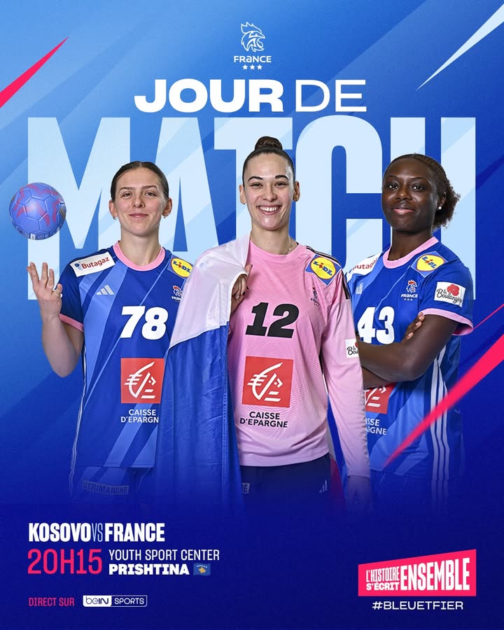 JOUR DE MATCH ! 🇽🇰⚡️🇫🇷 🤾♀️ #KOSFRA ⏰ 20h15 🏟️ Prishtina 🇽🇰 📺 @beinsports_fr | L’Équipe Live 📱#BleuetFier #ehfeuro2026 #behere